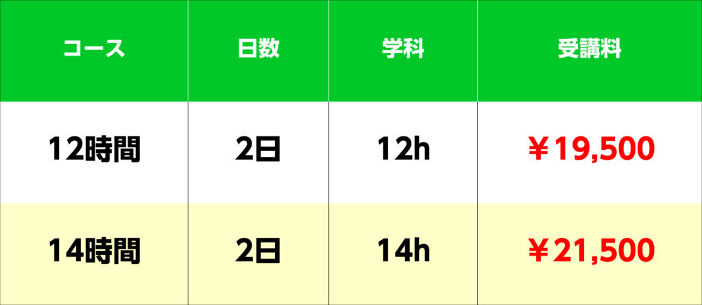 - ご希望講習日程をお電話にてご予約ください。 TEL 095-824-4910